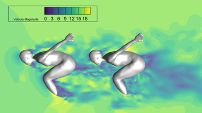 翁鼎等青年教师承担了“冬季运动与训练比赛高性能服装研发关键技术”重点专项比赛服空气动力学减阻的研究任务。与北京服装学院刘莉团队合作,结合流体力学仿真和空气动力学减阻原理,提出了冬季竞速项目比赛服的结构减阻、面料减阻等设计方案,短道速滑、大道速滑、高山滑雪、钢架雪车等项目的自主研发比赛服空气阻力降低了5-10%不等,全面优于能够获取的进口服装,并在2022北京冬奥会上实现了实战应用。空气动力学减阻技术在竞技体育中的成功应用是我国体育科技的新一座里程碑。