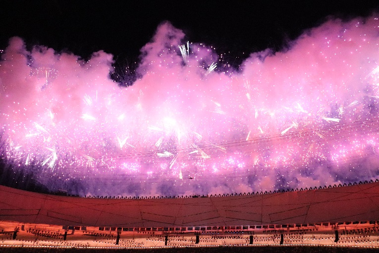 当烟花再一次绽放在鸟巢穹顶中的黑夜时,那红色的焰火和金色大厅红色的地毯在我心中逐渐重合为一个影子,在我心里飘起一朵朵红色的、燃烧的雪花。