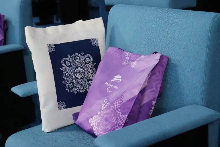 四场开闭幕式演出,每场都需要整理上千个观众的观礼物资袋。我们依次把毛毯、坐垫、口罩、帽子、国旗、徽章等观礼物资运送至金色大厅,然后一一装进物资袋中,并摆上观众席。听起来枯燥,但实则不然,每一次的装袋工作都像是车间流水线的“劳动比赛”,在欢声笑语中把我们的温情传递给了每一位观众手中。