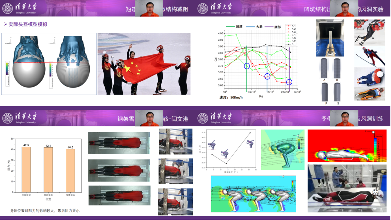 机械系汪家道教授团队受邀参加航院、深圳国际研究生院两场“清华人在冬奥”党组织生活。团队成员助理研究员翁鼎就“风洞在体育中的研究应用”一题结合案例展开分享。在分享过程中,翁鼎讲述了团队师生参与研发冬奥减阻竞速比赛服、钢架雪车减阻优化技术以及通宵达旦五天完成冬奥短道速滑队员头盔减阻结构制备等的工作细节,令同学们感受到清华人在服务国家重大需求过程中的责任心与使命感。