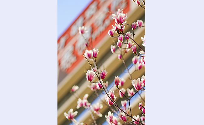 “十年树木,百年树人”这句话里有五道口人对教育的信仰,也有五道口人独有的浪漫。十年前,学院门口种下了两株高大的玉兰树,它们当时30年树龄,正和五道口同岁。如今已40年树龄的玉兰树更见高大挺拔,每年3、4月间,朴实、圣洁、典雅的玉兰花为学院之春奏响雅乐,见证着一场场的师生际会。尊重每一朵花自由盛放的灵魂,是五道口小院给予个体的呵护与珍视;若深探树木之根系,他们都坚定执着,牢牢站定。“记住你,经历水木年华才有桃李争艳;记住你,踏遍风雨征程不忘心灵家园。”