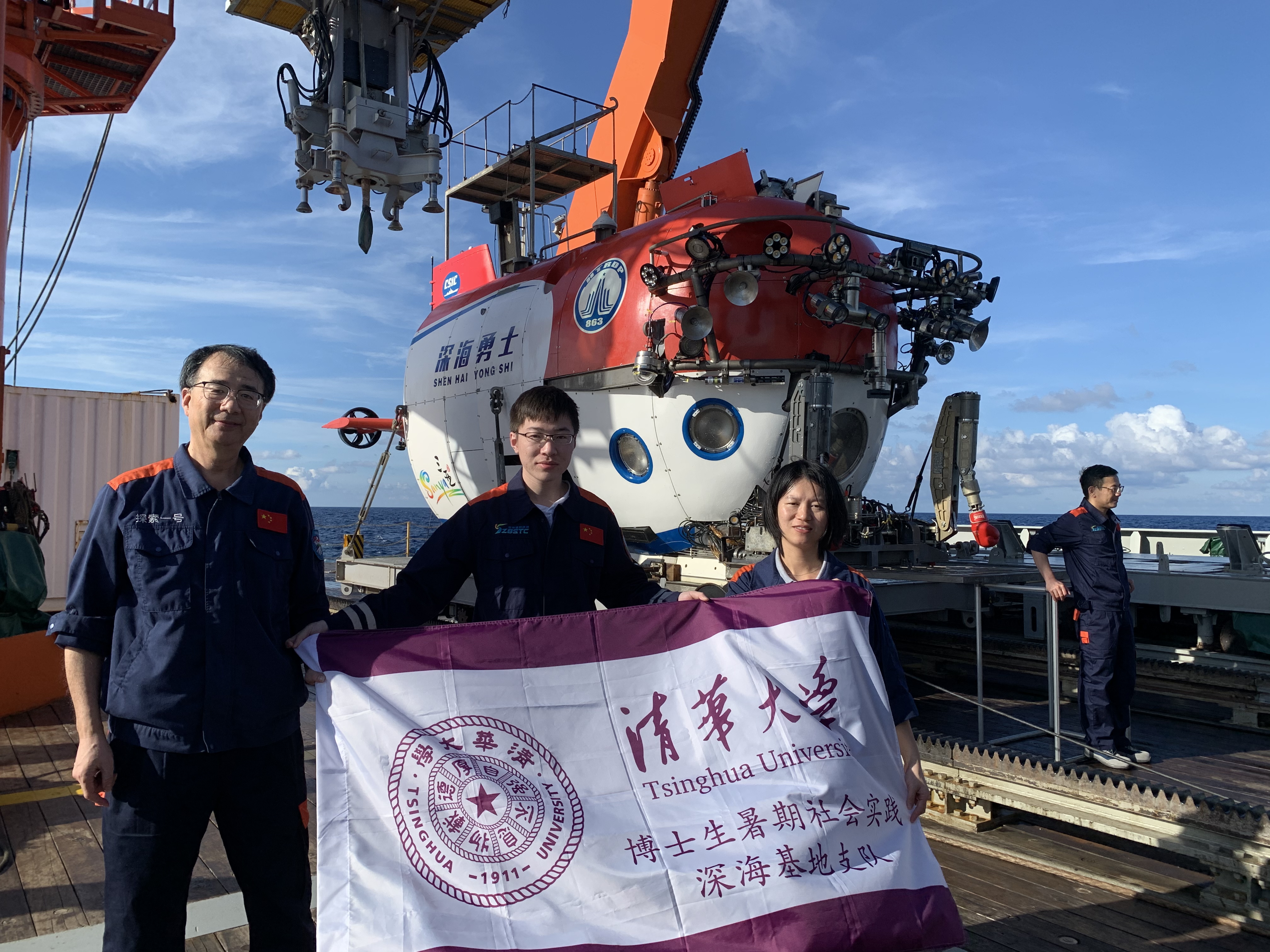 电子系博士生(中)在中科院深海所实践期间出海科考