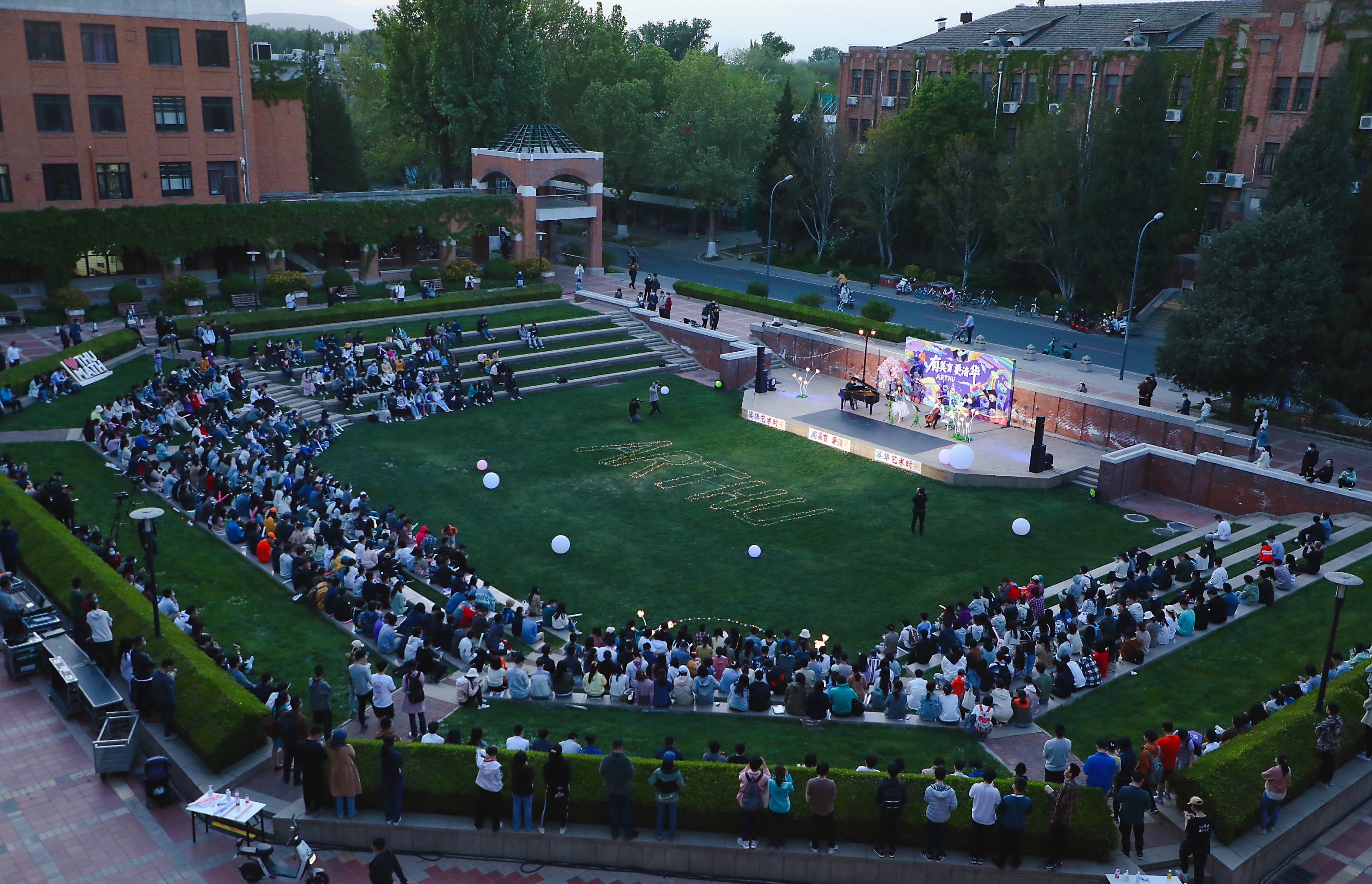 创新载体,形成“有美育,更清华”的大美育体系。在110周年校庆、五四青年节、“一二·九”运动纪念日等重要节点,开展青春诗乐会、“一二·九”革命歌曲演唱会等文艺演出10余场,覆盖师生4万余人次。开展“研创梦工厂”原创作品支持计划,支持并孵化《水木道》《未来归来》《THU Superhero》等50余件学生原创文化作品。将艺术带入公共空间,与科学和人文相融合,组织开展文新论坛、文新工作坊等美育课堂100余场,覆盖师生1万余人次;切实帮助研究生在日常场景中感受美,开展近20场“英华艺术时光音乐沙龙”、16场“校园艺术快闪”活动,覆盖师生4000余人次。
