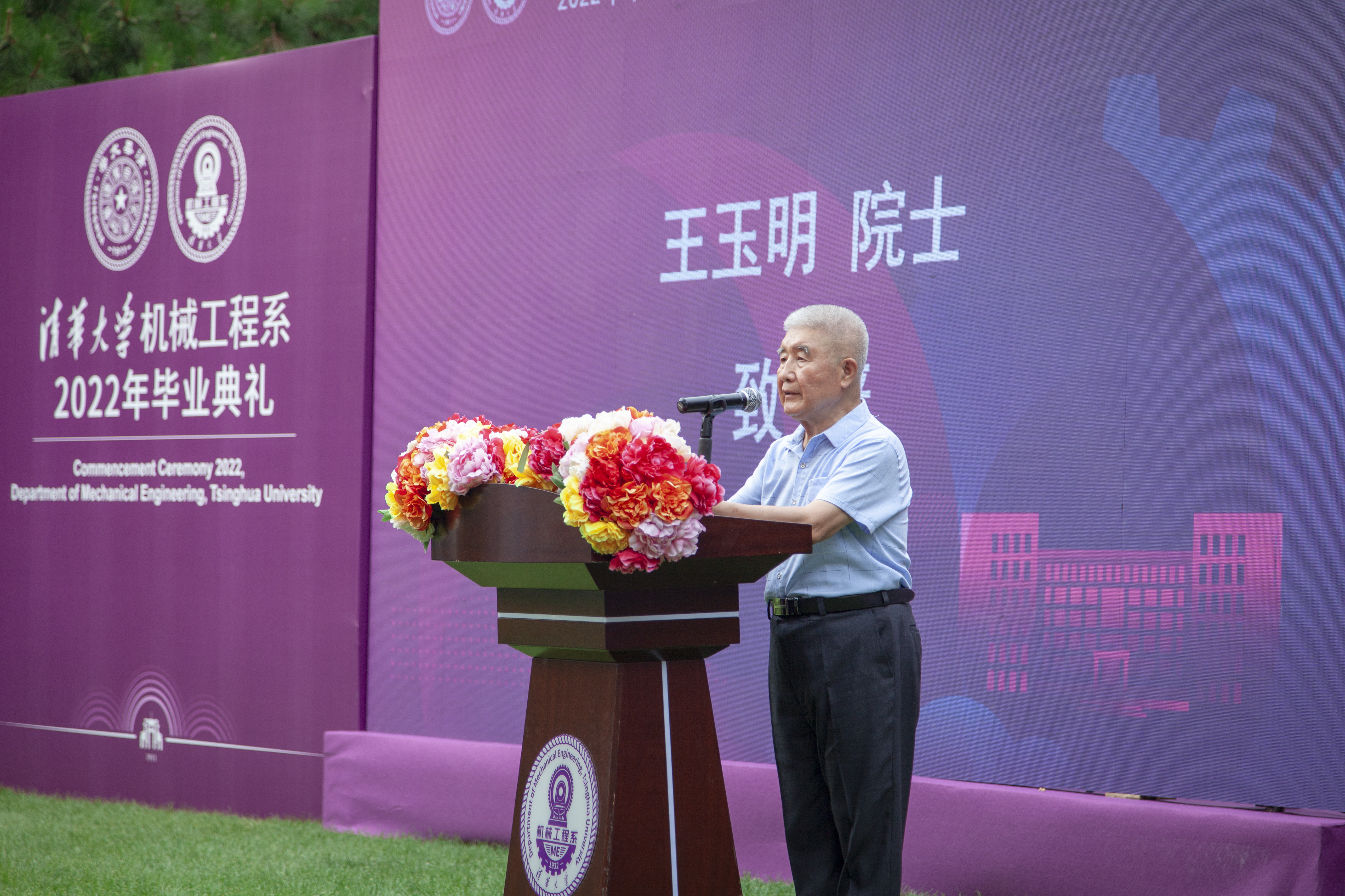 王玉明在致辞中向毕业生送上了三句赠言,分别是:“传承清华文化,做一个无悔于清华美誉的名副其实的清华人。”“兴趣和勤奋是成功的首要条件。”“热爱生活,过诗意人生”。