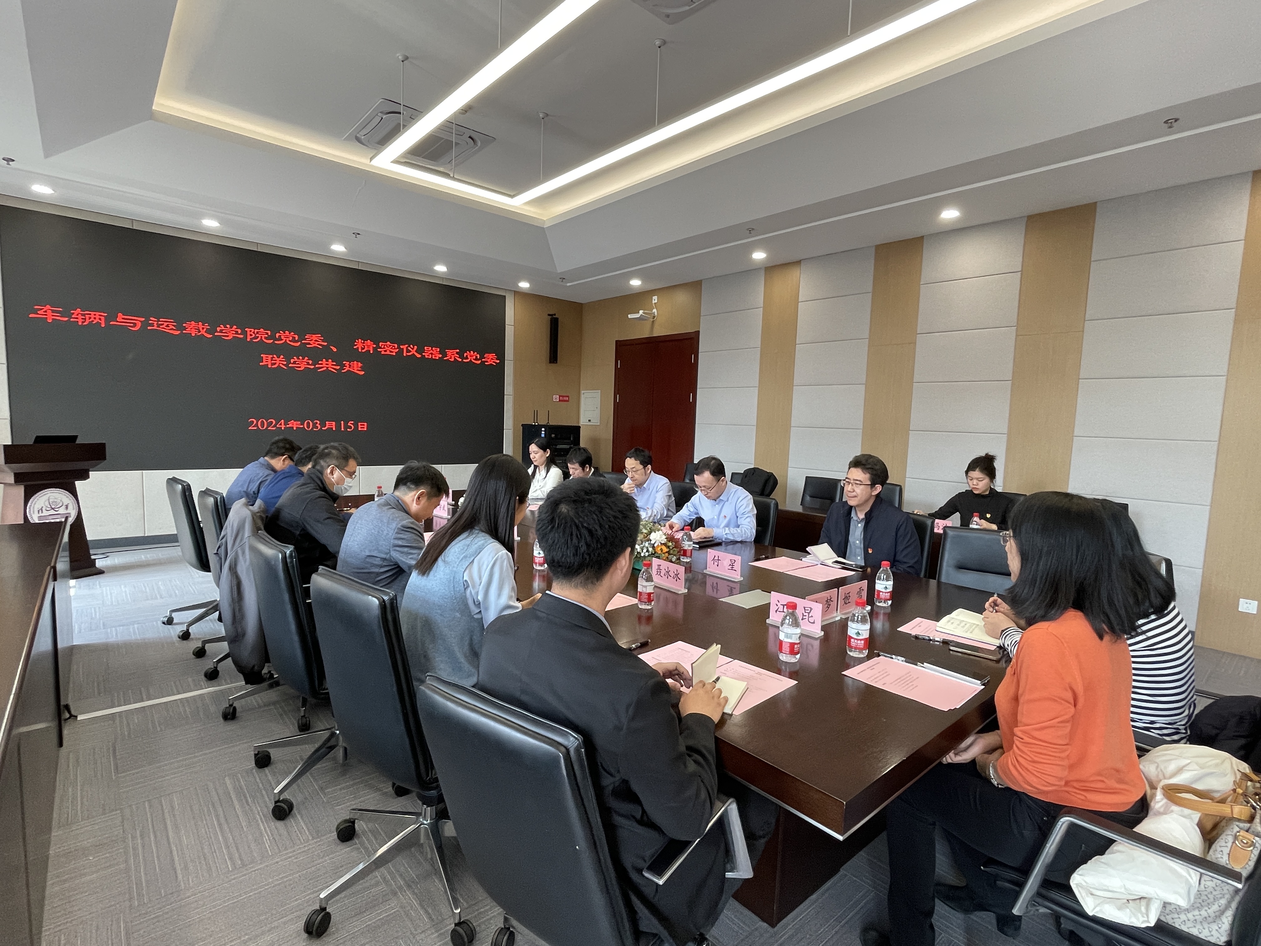 mk(中国)网3月18日电 3月15日,车辆学院党委与精仪系党委开展联学共建活动,深入学习贯彻全校教职工大会暨全校党员集中培训会议精神,推进落实《mk手机注册全面贯彻落实党的二十大精神行动方案》,推动党建工作高质量发展。精仪系党委书记白本锋主持活动,车辆学院党委书记李升波、党委副书记罗禹贡、聂冰冰,精仪系党委副书记吴冠豪,双方教师党支部书记、党办人员等15人参加学习。
