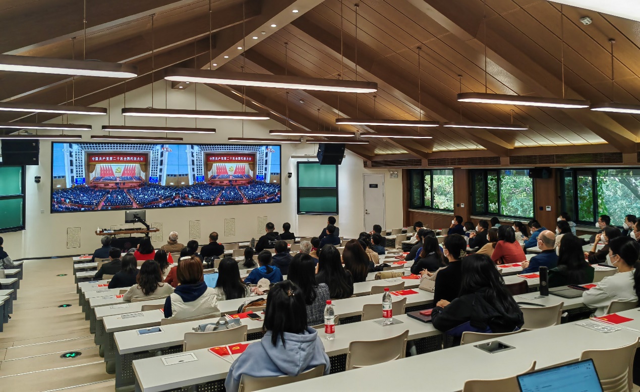 为第一时间学习党的二十大精神,各院系部处积极组织教职工和学生收看、收听开幕会直播。校团委会议室、西阶梯教室、老年活动中心、统战部会议室、清华附小博雅楼会议室……从学生党团支部到教职工党员、离退休教师,从院系党委理论学习中心组到附属单位党政班子,在这个举世瞩目的重要时刻,清华师生在校园各个会场内相约屏幕前,共同观看时代盛会、热议祖国未来、激发报国情怀。