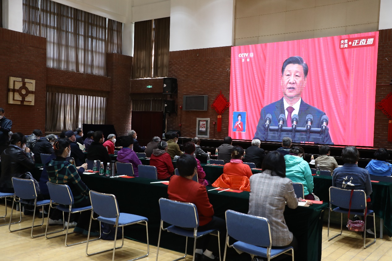 离退休工作部组织老同志代表在老年活动中心集中收看