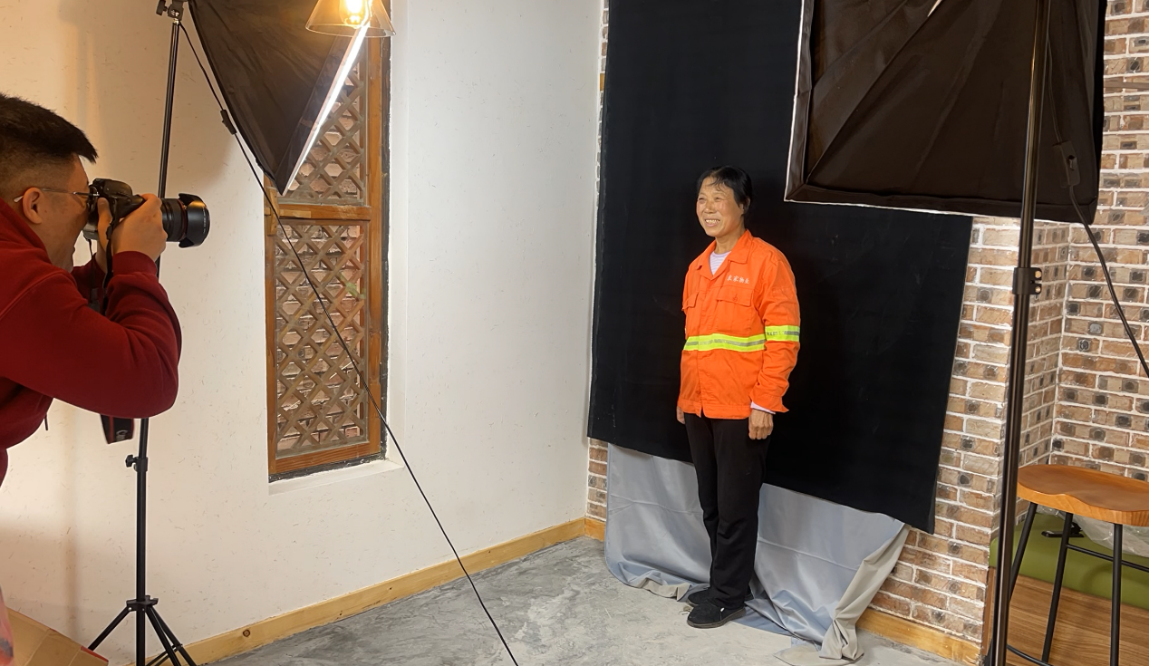2022年11月,村民收到袁家村微信大群中发布的通知后陆续前来排队拍照。有的村民一家四口来拍全家福,有的村民带着自己的产品“合拍”,在镜头前露出自然的笑容,朴实而可爱。