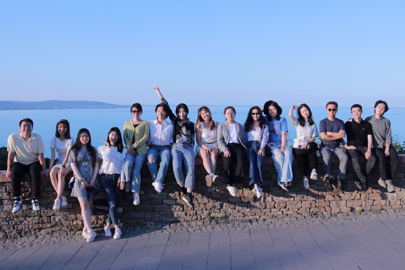 师生在中欧最大湖泊巴拉顿湖前合影