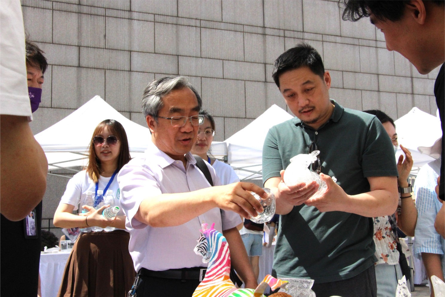 mk(中国)网6月30日电 近日,美术学院“毕业雅集&创意文化节”与美同行校园美育活动在美术学院B区广场举行。美术学院党委副书记吴琼,mk手机注册艺术博物馆常务副馆长杜鹏飞、副馆长李哲,伦敦玛丽女王大学教授尼克(Nick Bryan-Kinns)等参加活动。