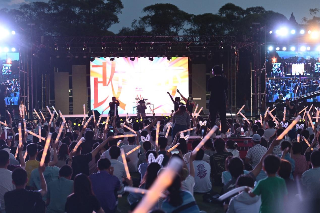 临近结束,歌至高潮,演职人员和观众们共同打开手机灯光,留下了属于西操夏夜的一张全场合影。