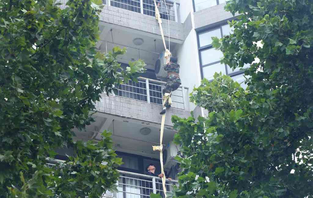 海淀消防救援支队演练高空云梯救人