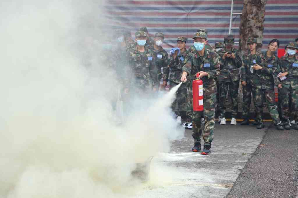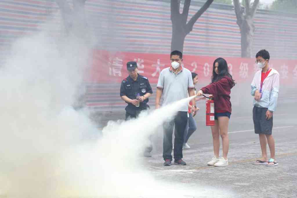 学生实操灭火器灭火演练