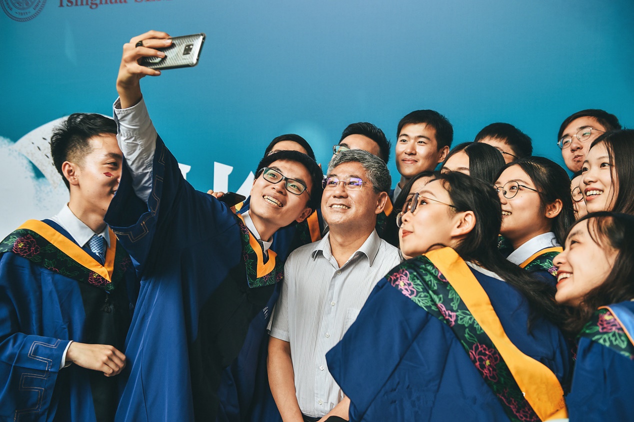 白重恩与毕业生合影