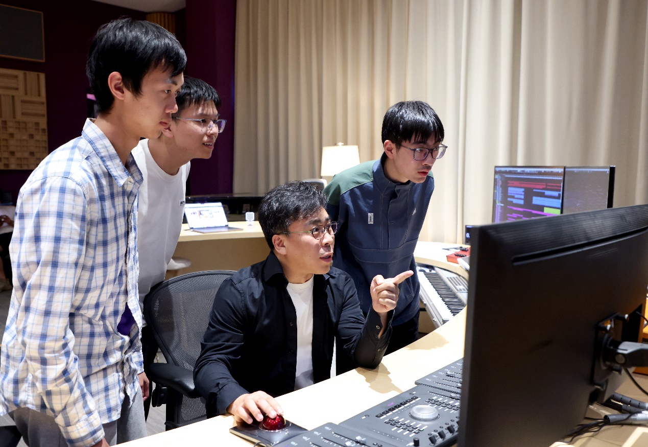 电影音乐课程更专注“浸润”式的教学,因此营造一个合适恰当的学习氛围与场域尤为重要。平和亲切的交谈方式是营造轻松愉快的学习氛围的重要方式;程远老师在授课的过程中会“弱化”自己的教师身份,经常像朋友一样和学生交流。电影音乐创作课的特殊性决定了要有更适合学生学习的场域,因此,程远老师通过实验室项目的研究建立了全景声实验室,打破了传统的教室模式,使学生在学习过程中始终能获得身临其境的真实感受,在这种相对自在、自由、入境的场域,学生们也像一群朋友在一起玩音乐,充满着热爱与幸福感。这种幸福感给学生的心灵带来了极大的沁润和滋养。