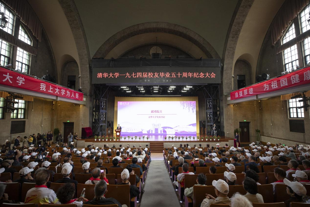 邱勇在致辞中代表学校向回到母校的1974届校友表示热烈欢迎。他说,作为全国第一届工农兵学员,1974届校友承载着一段厚重的历史。1970年,校友们从田间地头、工厂车间等全国各地的基层单位来到清华园,在这里学习知识、增长才干,为人生奠定坚实的基础。毕业后校友们自觉响应国家号召,奔赴祖国四面八方,到党和人民最需要的地方发光发热,用50年的拼搏奋斗、默默奉献践行了“人民送我上大学,我上大学为人民”的誓言。