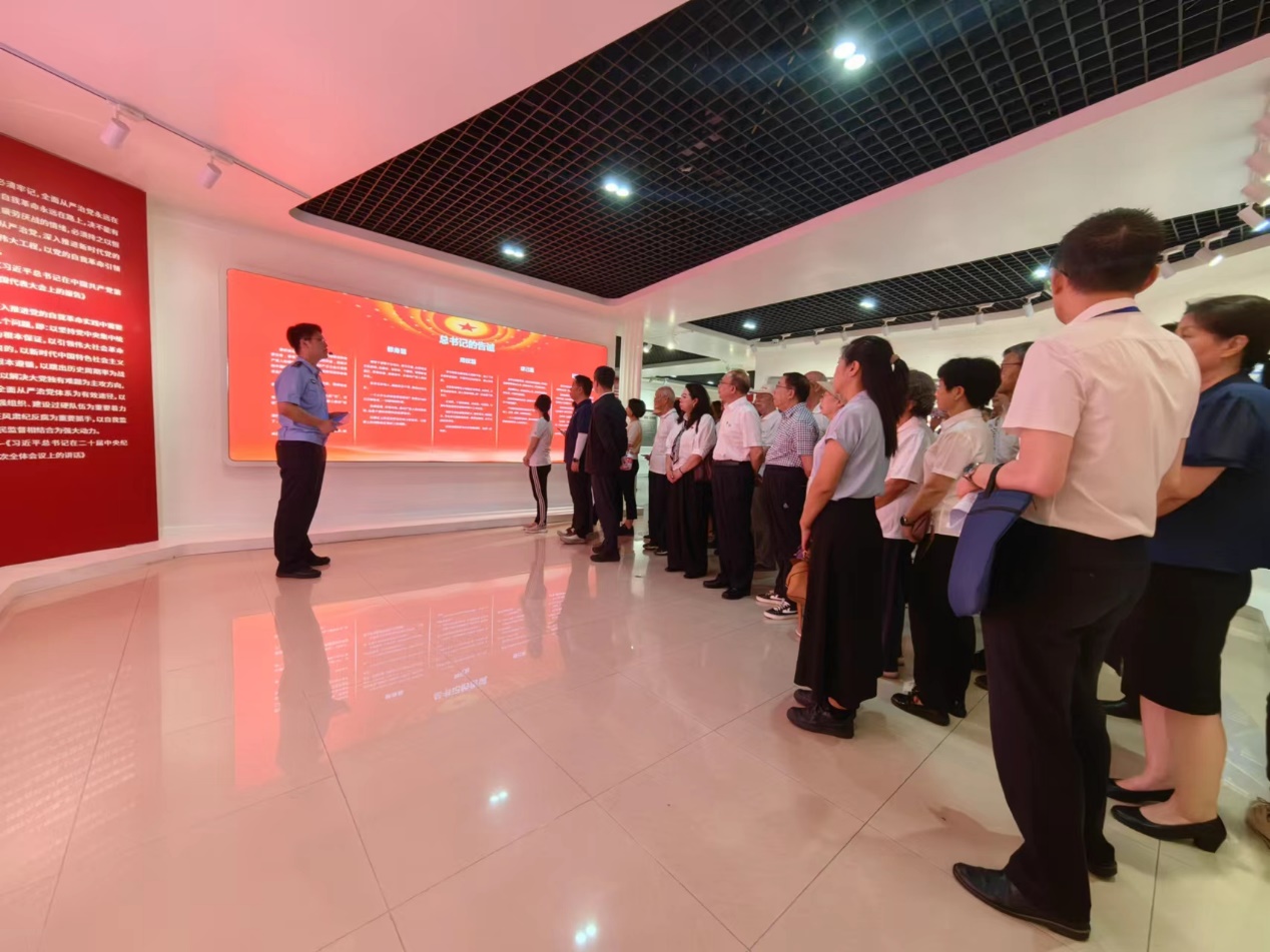 北京市全面从严治党警示教育基地展览从“总书记的告诫”开篇,以习近平总书记重要论述为主线,充分运用党的十八大以来正风反腐成果开展警示教育。在讲解员的引领下,大家先后参观了“挺纪在前、筑牢防线”“以案为鉴、知畏知止”“不忘初心、牢记使命”三个主题展区,展厅中以文字、图片、视频等形式深刻剖析了党员干部违纪违法犯罪的典型案例,呈现了一幅幅生动真实的鲜活图片、一桩桩触目惊心的贪腐案例、一句句发人深省的廉政警句。面对多名职务犯罪服刑人员声泪俱下的忏悔视频和身临其境的“高墙内生活”,强烈的代入感宛如声声警钟,直击全体党员干部的内心深处,使大家深受震撼和触动。参观最后,面向鲜红的党旗,中心党总支书记刘强作为领誓人,带领党员干部重温入党誓词,表达了党员干部入党的初心使命,坚定信念和决心。