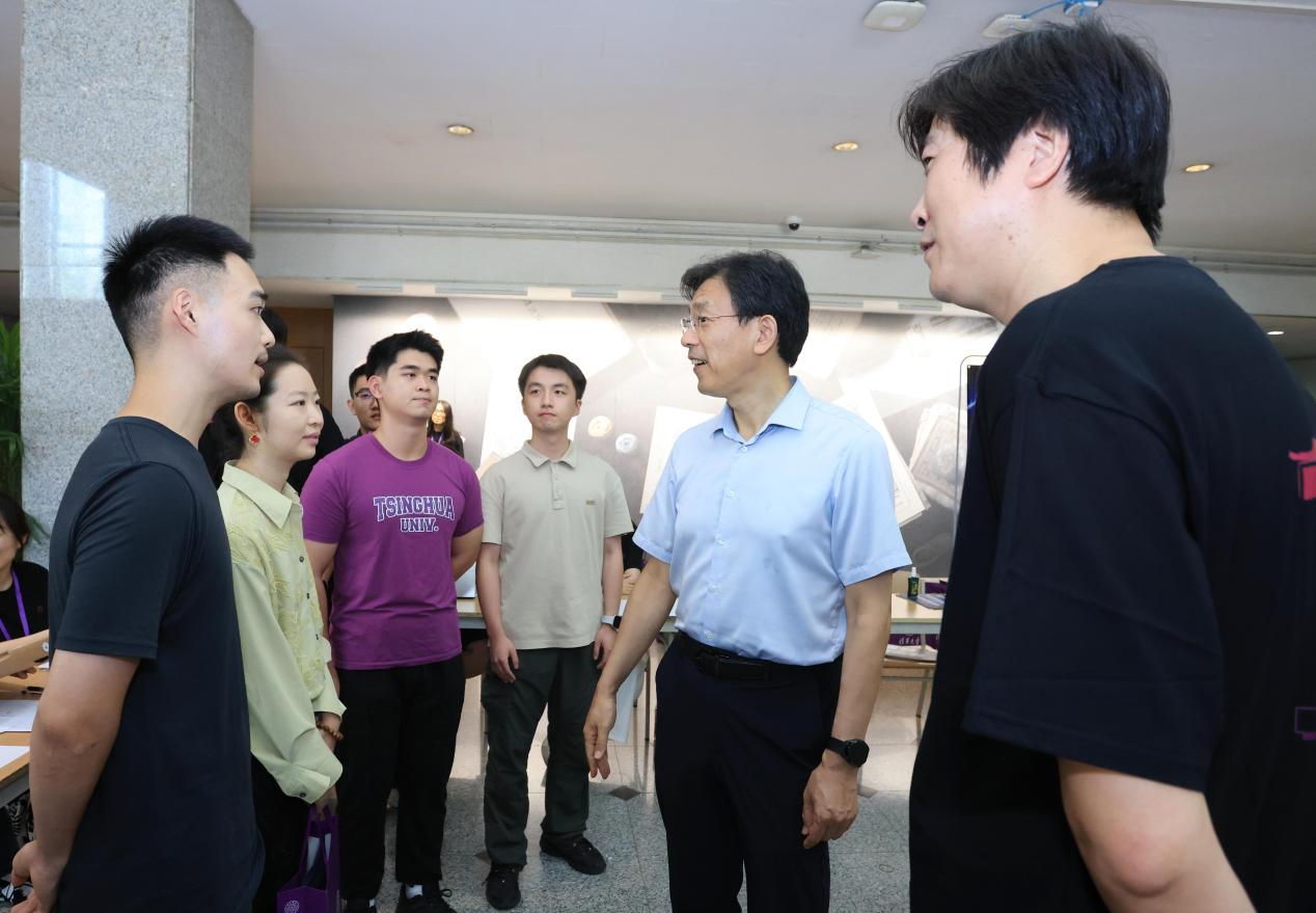 在心理与认知科学系迎新点,邱勇详细了解研究生招生和迎新工作情况,并欢迎新生们加入清华大家庭。来自云南的藏族同学李星达曾连续三年为民族地区青少年提供志愿服务。他利用脑成像设备探索发现协作论证过程中双人脑间同步性,成果发表在国际学术会议及相关期刊上。邱勇鼓励他和各位新同学,进入新的学习阶段,要继续实学实干、奋勇争先,积极服务健康中国建设。