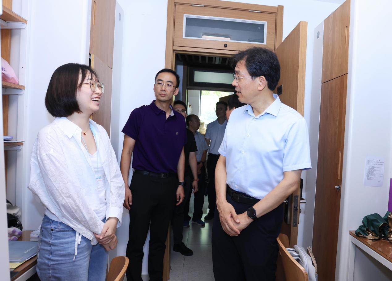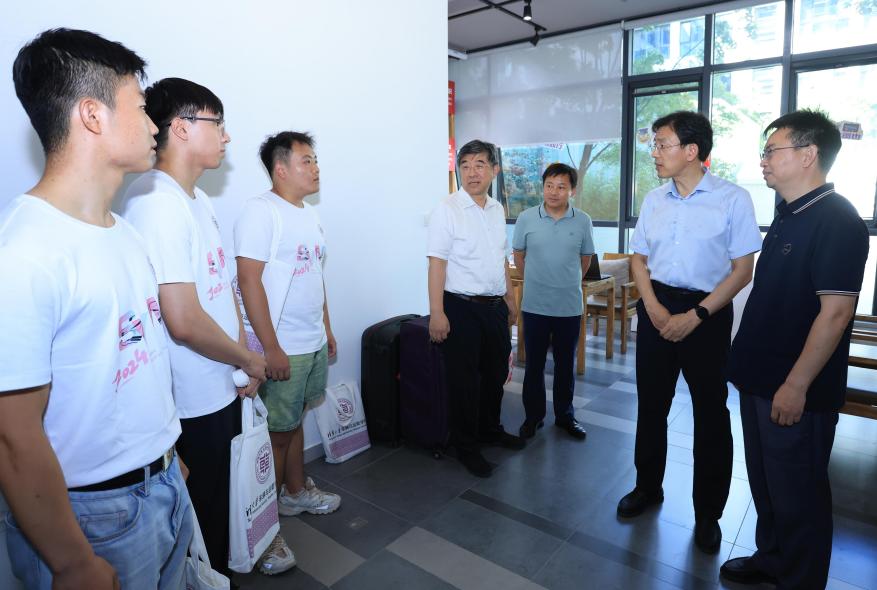 下午,李路明一行来到车辆学院、建筑学院和南区学生宿舍,了解招生和迎新情况,并与新生亲切交谈。