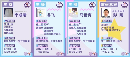 副校长彭刚老师做客写作云工坊宣传卡牌