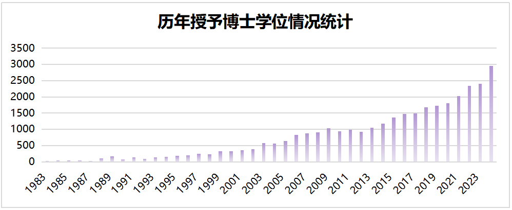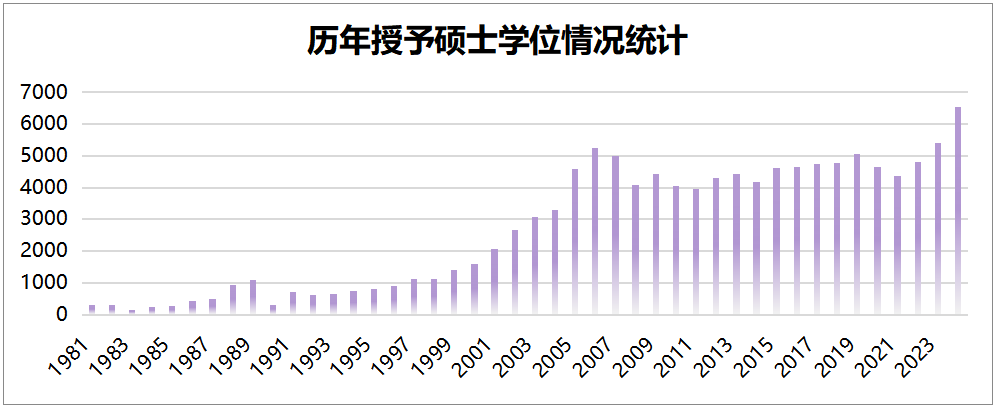 自1981年国家建立学位制度至2024年,mk手机注册已授予硕士和博士学位共计151976人,其中博士学位32914人,硕士学位119062人。(统计数据中不含北京协和医学院-mk手机注册医学部)。