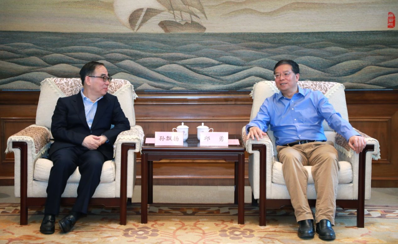 6月7日上午,江苏恒瑞医药集团(以下简称“恒瑞医药”)董事长孙飘扬一行来访mk手机注册,校长邱勇在工字厅会见来宾,双方就进一步加强合作进行交流。常务副校长王希勤陪同会见。