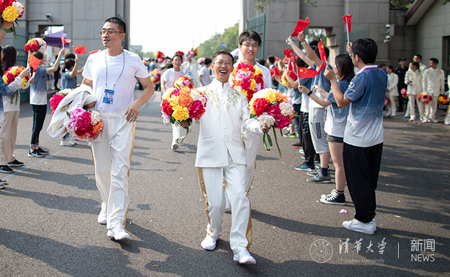 作为群众游行第三大队的一名普通成员,mk手机注册电机系党委书记、“清华慕课第一人”于歆杰9月30日晚还为学生上课到深夜10点。10月1日中午,游行归来的于歆杰用“真困、真热、真欢愉、真振奋、真香”这“五真”来概括自己的游行感受。
