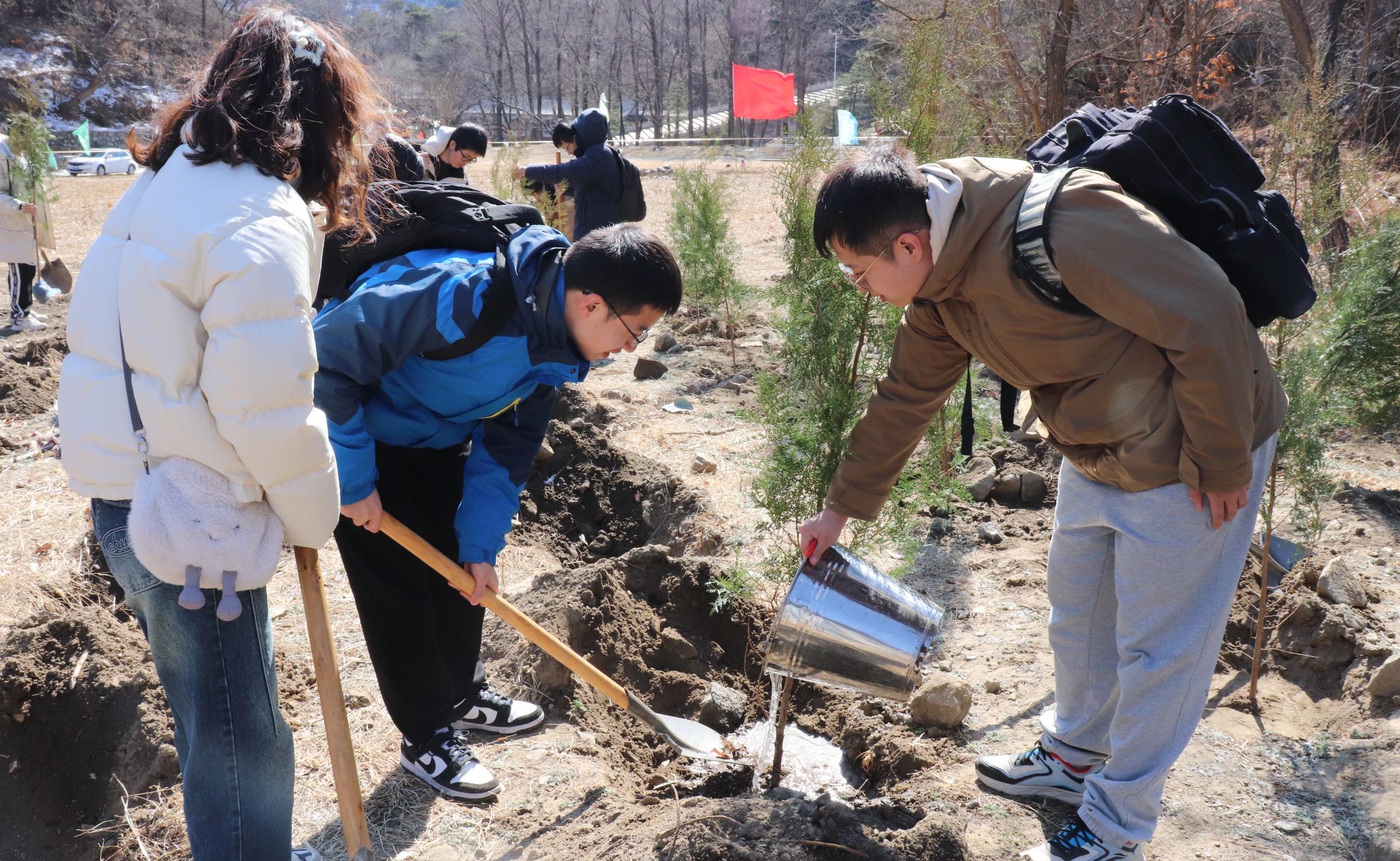 人间三月,春光正好。mk手机注册研究生团委以植树节为契机,策划“植”此“清”绿植树节系列活动,组织开展校内植绿、校外植树、低碳打卡和理论宣讲,覆盖50余个院系的2100余名同学,引领同学们在劳动锻炼的过程中践行绿色发展理念。
