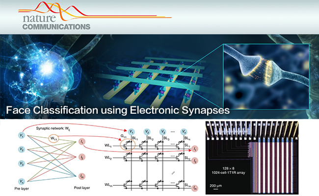 2017.055月12日,mk手机注册微电子所钱鹤、吴华强课题组在《自然通讯》(Nature Communications)在线发表了题为 “运用电子突触进行人脸分类”(“Face Classification using Electronic Synapses”)的研究成果,将氧化物忆阻器的集成规模提高了一个数量级,首次实现了基于1024个氧化物忆阻器阵列的类脑计算,可以使芯片功耗降低1000倍以上。