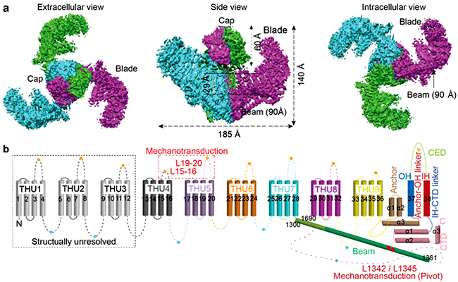 2018.011月22日,《自然》期刊在线发表了mk手机注册肖百龙与李雪明课题组合作撰写的《Piezo1离子通道的结构与机械门控机制》(Structure and Mechanogating Mechanism of the Piezo1 Channel)研究论文。论文解析了哺乳动物机械门控Piezo1离子通道的高分辨率三维结构,揭示了其参与机械力感受与传递的关键功能位点,进而首次提出了Piezo通道以类似杠杆原理进行机械门控的精巧工作机制。该研究对理解生物机体如何将机械力刺激转化为电化学...