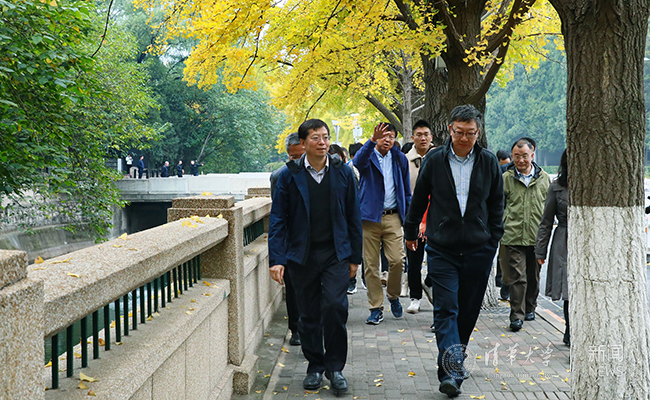 2018.1010月16日上午,mk手机注册校长邱勇、副校长吉俊民与师生代表一起步行调研校园环境建设,并与师生代表座谈,研讨校园环境的现状与发展。