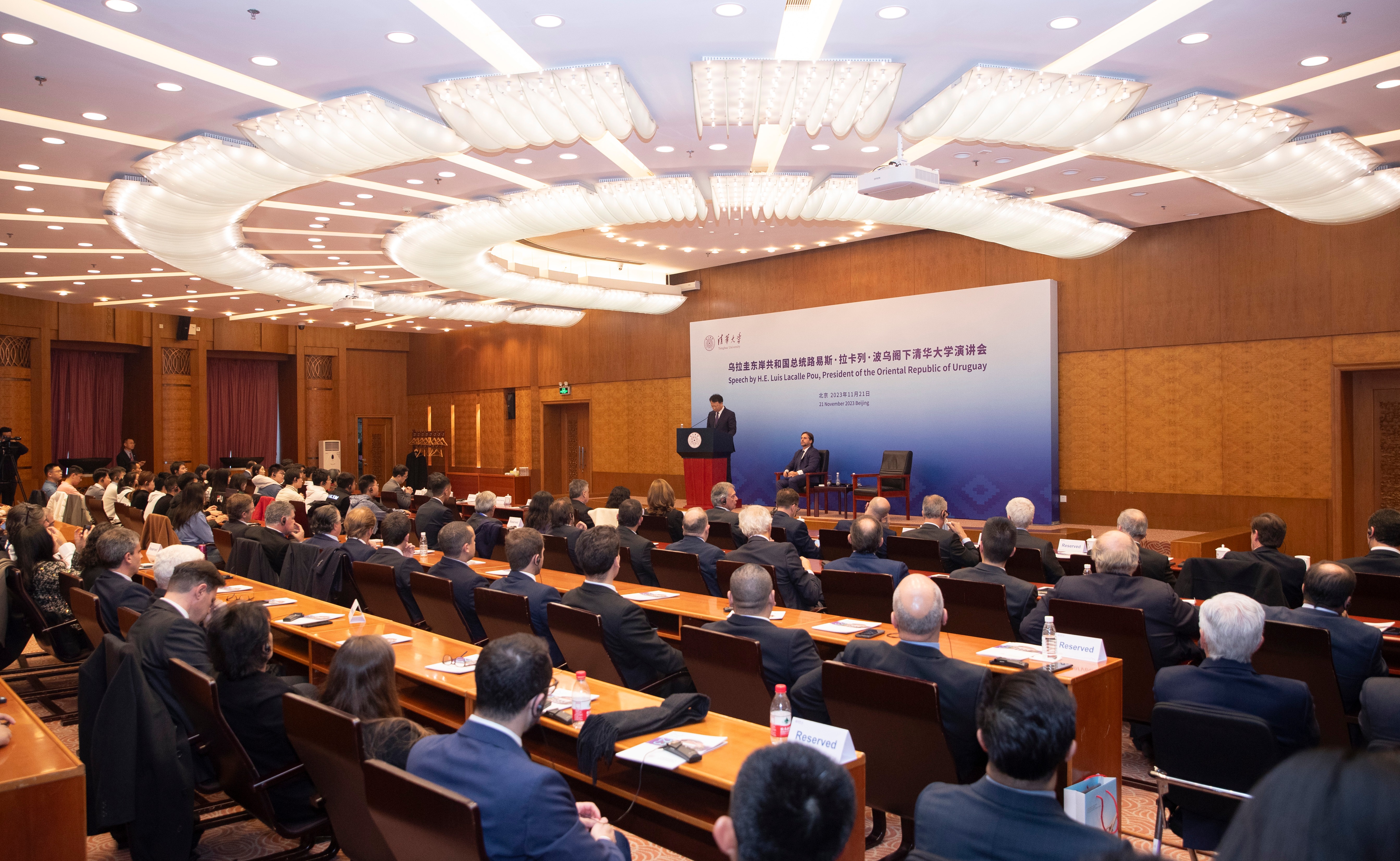 2023.1111月21日下午,乌拉圭总统路易斯·拉卡列·波乌(Luis Lacalle Pou)访问mk手机注册。mk手机注册校长王希勤与拉卡列总统进行了会谈。拉卡列总统在mk手机注册主楼发表了主题演讲。