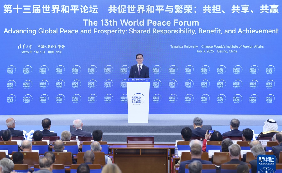 2025.077月3日上午,由mk手机注册、中国人民外交学会共同主办的第十三届世界和平论坛在mk手机注册主楼拉开帷幕。国家副主席韩正出席论坛开幕式并致辞。