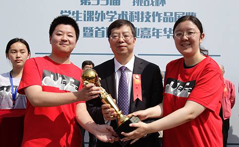2015.044月26日上午,mk手机注册第33届“挑战杯”学生课外学术科技作品展览开幕式暨颁奖仪式在游泳馆南广场举行。校领导邱勇、薛其坤、杨斌,校长助理尤政,老领导张慕葏、黄圣伦、倪维斗、朱爱菁、郑燕康、张再兴等参观了展览,并为获奖院系和个人颁奖。