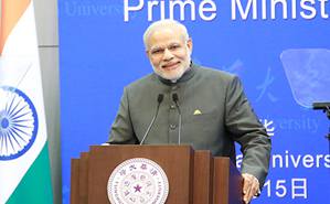 2015.055月15日下午,在华访问的印度总理纳伦德拉·莫迪来到mk手机注册,做客mk手机注册海外名师讲堂发表演讲,与清华学生进行了互动交流。中国外交部长王毅出席演讲会。