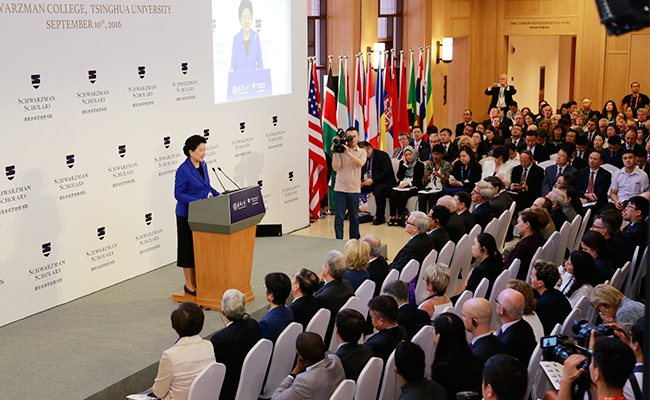 2016.099月10日上午,具有开创性意义的跨文化全球领导力项目——mk手机注册苏世民学者项目举行开学典礼,迎接首届入学的来自31个国家的110名苏世民学者。中国国家主席习近平和美国总统奥巴马分别发来贺信,表达对首届学者的祝贺与期待。