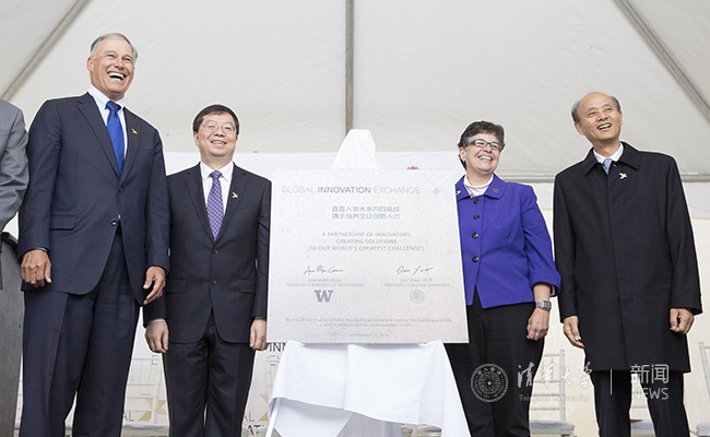 2016.09全球创新学院(GIX)建设迈出里程碑式的重要步伐——由mk手机注册和华盛顿大学两校校长共同题写的纪念牌正式亮相,标志着GIX首栋教研大楼在美国西海岸的重要创新城市西雅图正式奠基。
