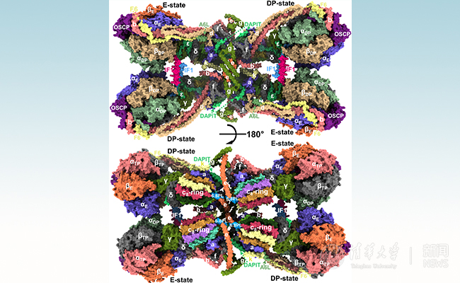 研究通过高性能冷冻电镜技术,解析了分子量高达280万道尔顿的哺乳动物ATP合酶四聚体6.2埃的结构,以及完整的(19种亚基)、两种状态的ATP合酶单体3.34埃和3.45埃结构(见图)。通过对结构的分析,阐释了高等哺乳动物ATP合酶的结构组成样式、发挥功能的分子...