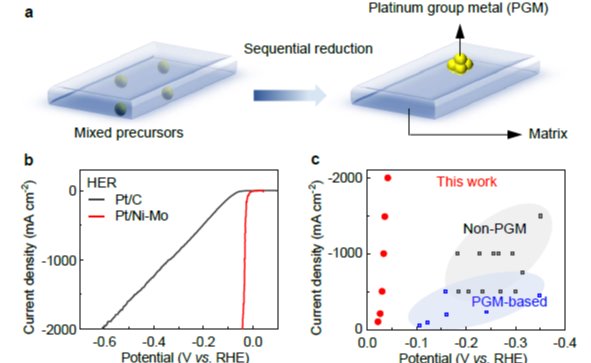 近日,清华-伯克利深圳学院刘碧录团队与中国科学院上海高等研究院李炯团队合作,通过两步法制备出Pt纳米颗粒高分散在高比表面积的Mo-Ni基底上的析氢催化剂(Pt/Ni-Mo),仅需42mV和113mV的过电势,即可分别在1M KOH和盐水(1M KOH+0.5 M NaCl)中达到2000 ...