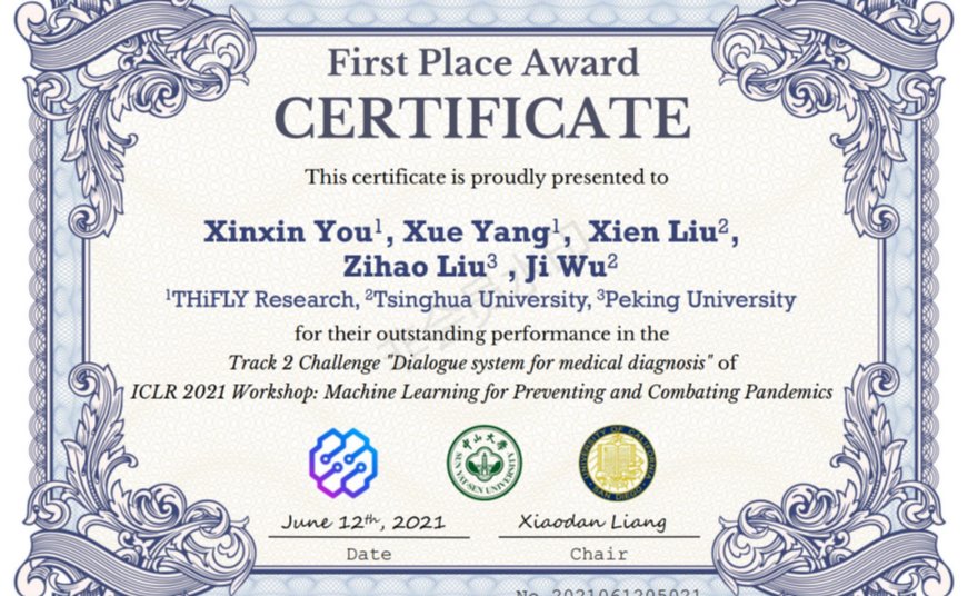 为了推动机器学习技术在医疗健康领域的发展,国际表征学习会议2021发起了机器学习预防和防止流行病全球挑战赛。电子系吴及教授课题组参加了机器学习预防和防止流行病挑战赛的疾病自动诊断对话系统赛道,在全球73支参赛队伍中夺得第一名。