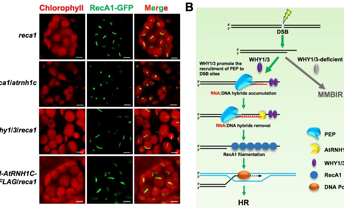 2021.06生命学院孙前文实验室发现RNA:DNA杂合链协助修复拟南芥叶绿体基因组断裂的新机制