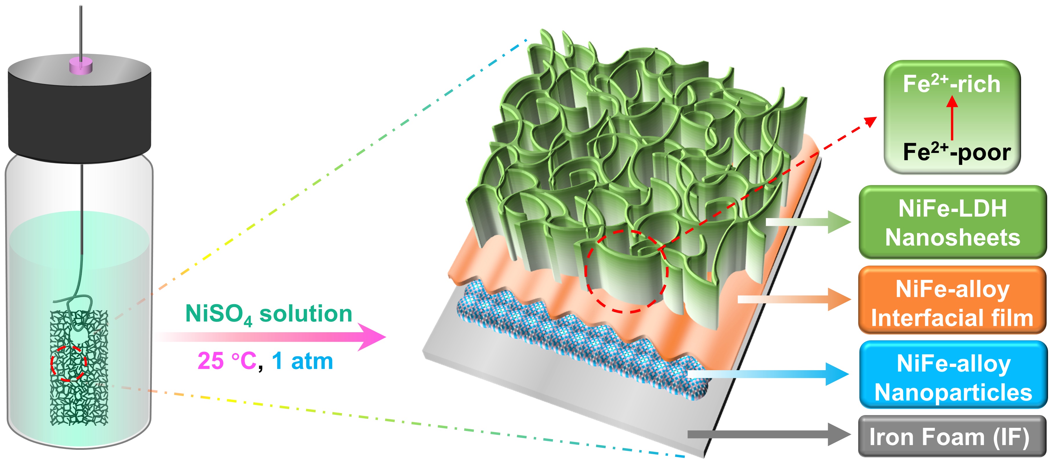 材料学院姚可夫、邵洋研究团队在腐蚀法制备析氧反应电催化剂领域取得新进展,通过系统的实验研究首次揭示了自支撑镍铁层状双氢氧化物(NiFe-LDH@IF)完整的生长机制。
