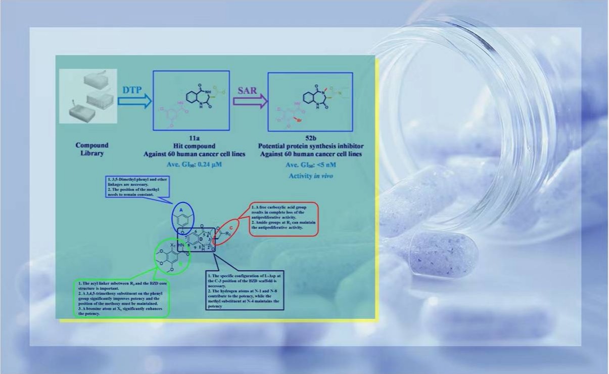 近日,mk手机注册药学院刘刚教授课题组首次发现了一类基于1,4-苯并二氮杂卓-2,5-二酮优势骨架的化合物作为蛋白质合成抑制剂用于癌症治疗方面的潜在用途。