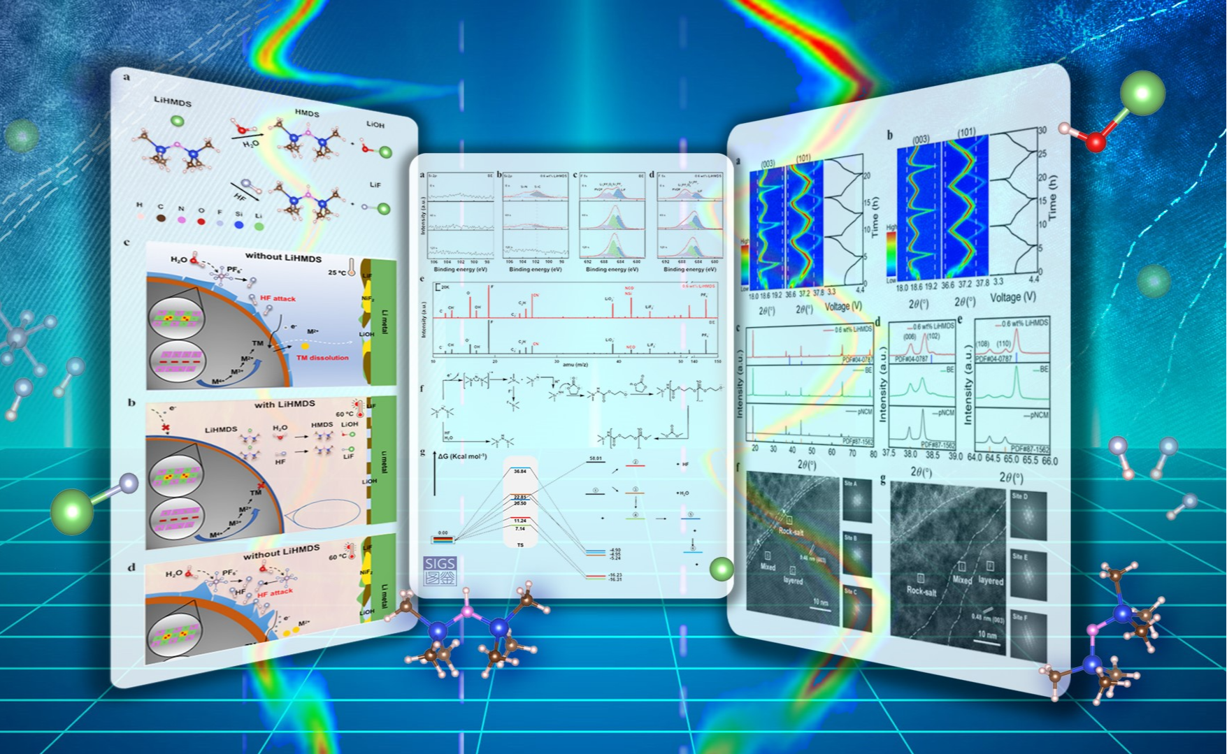 近日,mk手机注册深圳国际研究生院贺艳兵课题组开发了一种多功能的六甲基二硅胺基锂(LiHMDS)电解液添加剂,发现在典型的含氟碳酸酯非水电解液中仅添加0.6wt%的LiHMDS,就能使Li||LiNi0.8Co0.1Mn0.1O2(NCM811)电池在25°C−60°C温度范围和4.5V高截止电压下稳...