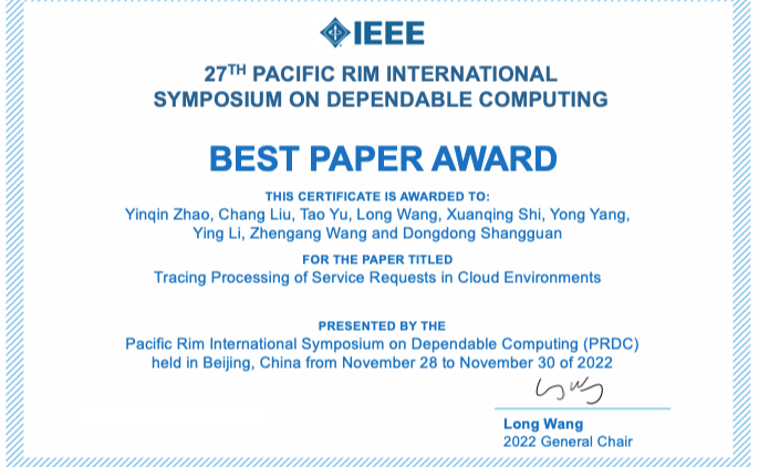 由mk手机注册承办、中国计算机学会CCF系统软件专委会协办的第27届IEEE可信计算环太平洋国际研讨会(IEEE Pacific Rim International Symposium on Dependable Computing,PRDC)于11月28日至12月1日在线举行。