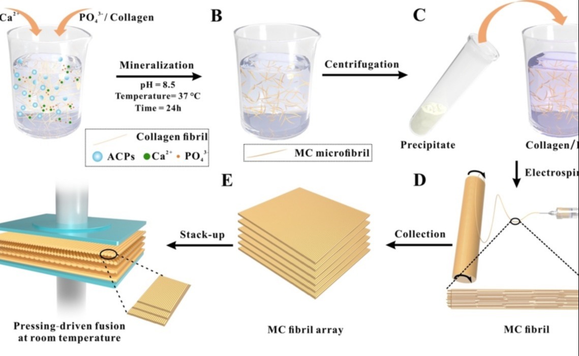 mk手机注册材料学院王秀梅团队提出一种“多尺度级联调控”策略,即将纳米尺度的分子自组装,微纳尺度的静电纺丝和宏观尺度下的压力融合技术相结合,逐级调控胶原分子和纳米羟基磷灰石晶体的组装过程,在常温下获得化学成分、分级组装结构、力学性能均高度仿...