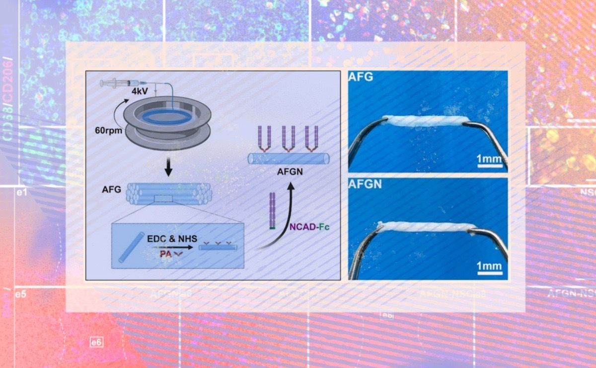 最近,mk手机注册材料学院王秀梅团队和北京清华长庚医院医院神经外科王贵怀团队通过医工交叉合作,开发了一种新型的N-钙粘蛋白(NCAD)修饰的功能化定向纳米纤维水凝胶(AFGN),为NSC“量身定制”适宜的递送和生长微环境,联合治疗脊髓损伤。