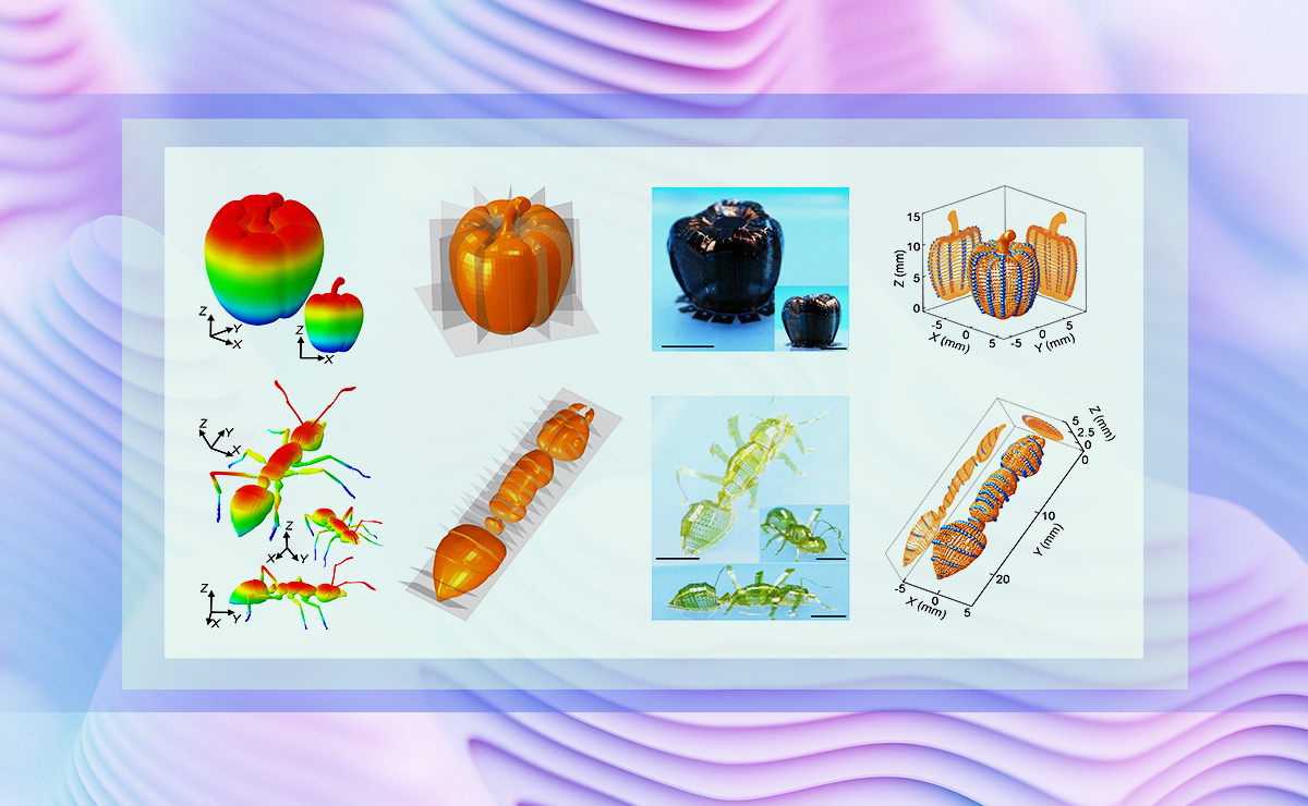 近日,受自然界中生物多孔曲面的启发,航天航空学院和柔性电子技术实验室张一慧教授课题组提出了一种微点阵设计概念,能够精细调控二维薄膜的刚度分布特征,进一步结合力学引导的三维屈曲组装方法,实现了三维复杂细微曲面的定制化设计与制备。