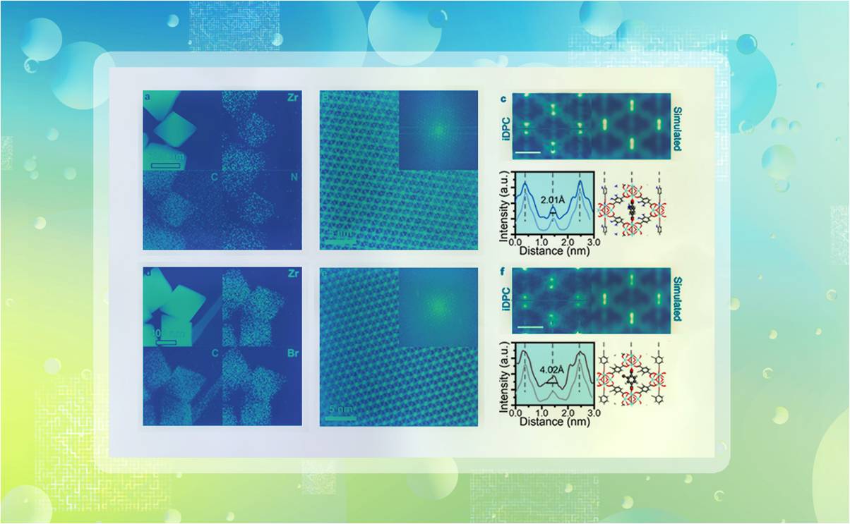 近日,mk手机注册化工系王铁峰教授课题组和陈晓助理研究员合作,通过积分差分相位衬度扫描透射电子显微技术(iDPC-STEM),实现了对UiO-66这种典型MOF中Zr金属节点和对苯二甲酸(BDC)配体的原子尺度成像,并研究了不同配体取代基对MOF柔性的影响。