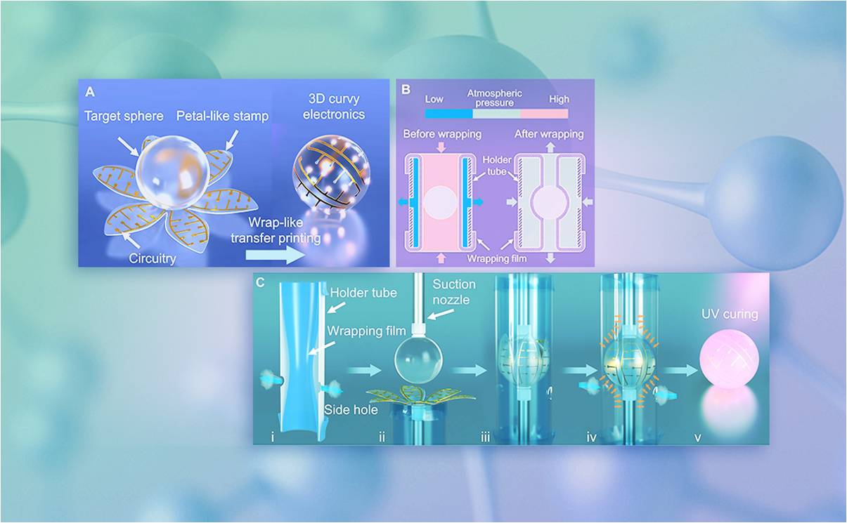 近日,mk手机注册柔性电子技术实验室、航院冯雪教授团队在三维曲面电子制造方法取得重要进展。研究团队提出了一种包裹式曲面转印方法,利用花瓣状印章将平面电路通过花瓣包裹目标球体,实现三维曲面电子器件的制造。文章结合几何关系与力学分析设计出低褶皱...